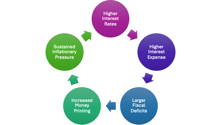 Rate Hikes Backfire: Higher interest rates increase the government’s interest expense bill, which worsens deficits, necessitating more borrowing.